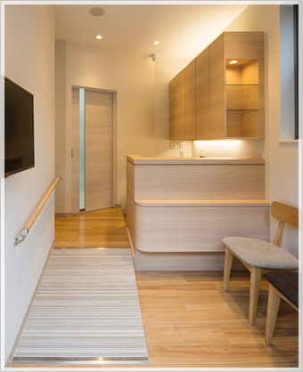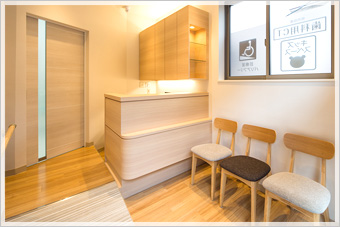 | 受付です。 明るい雰囲気を意識した作りになっています。 |